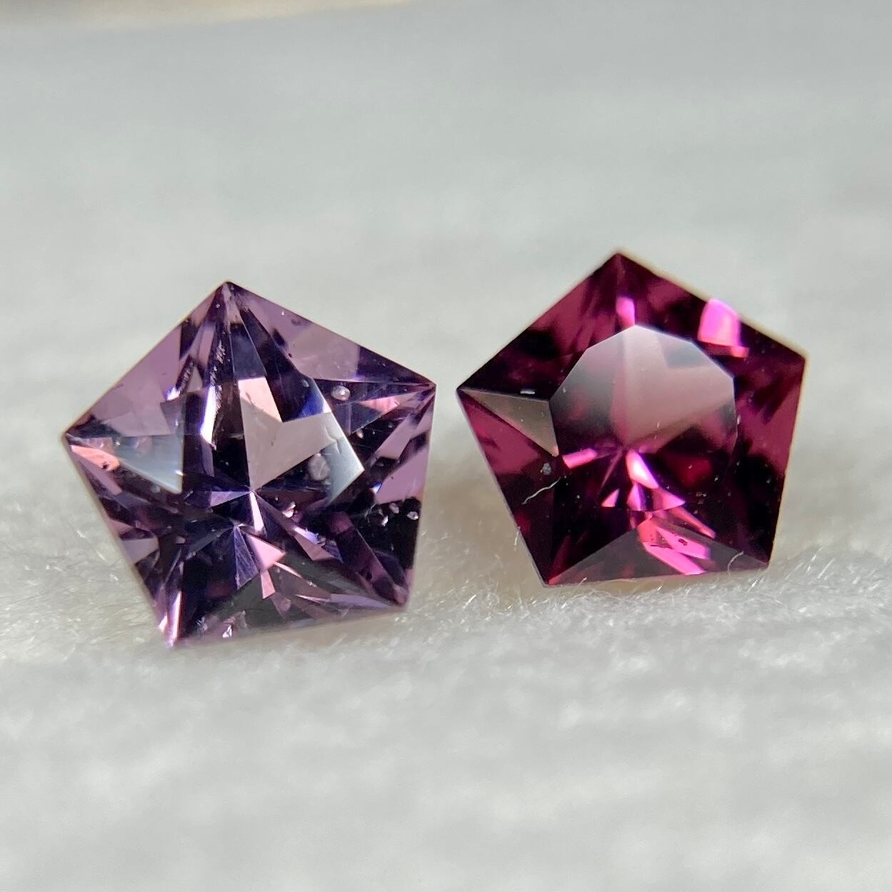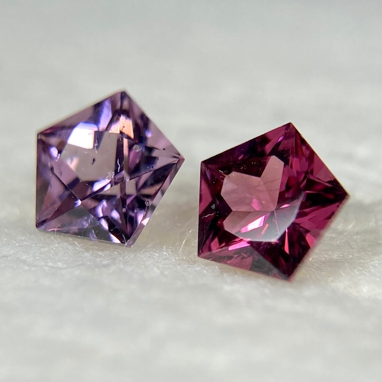 左:スピネル 約4.7mm 高さ約3.0mm