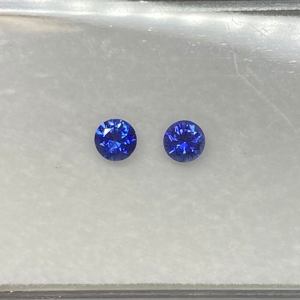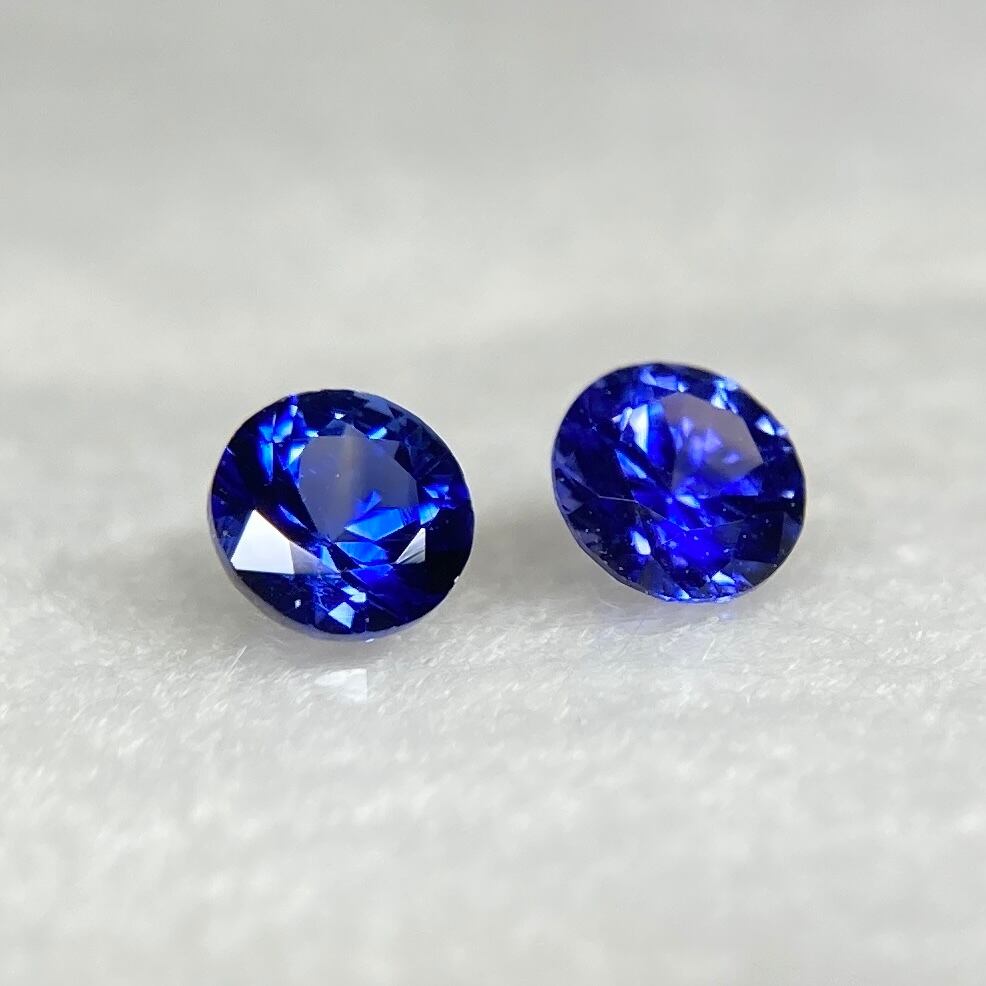 丸いサファイア 2点セット 青系 約3mm r-0361