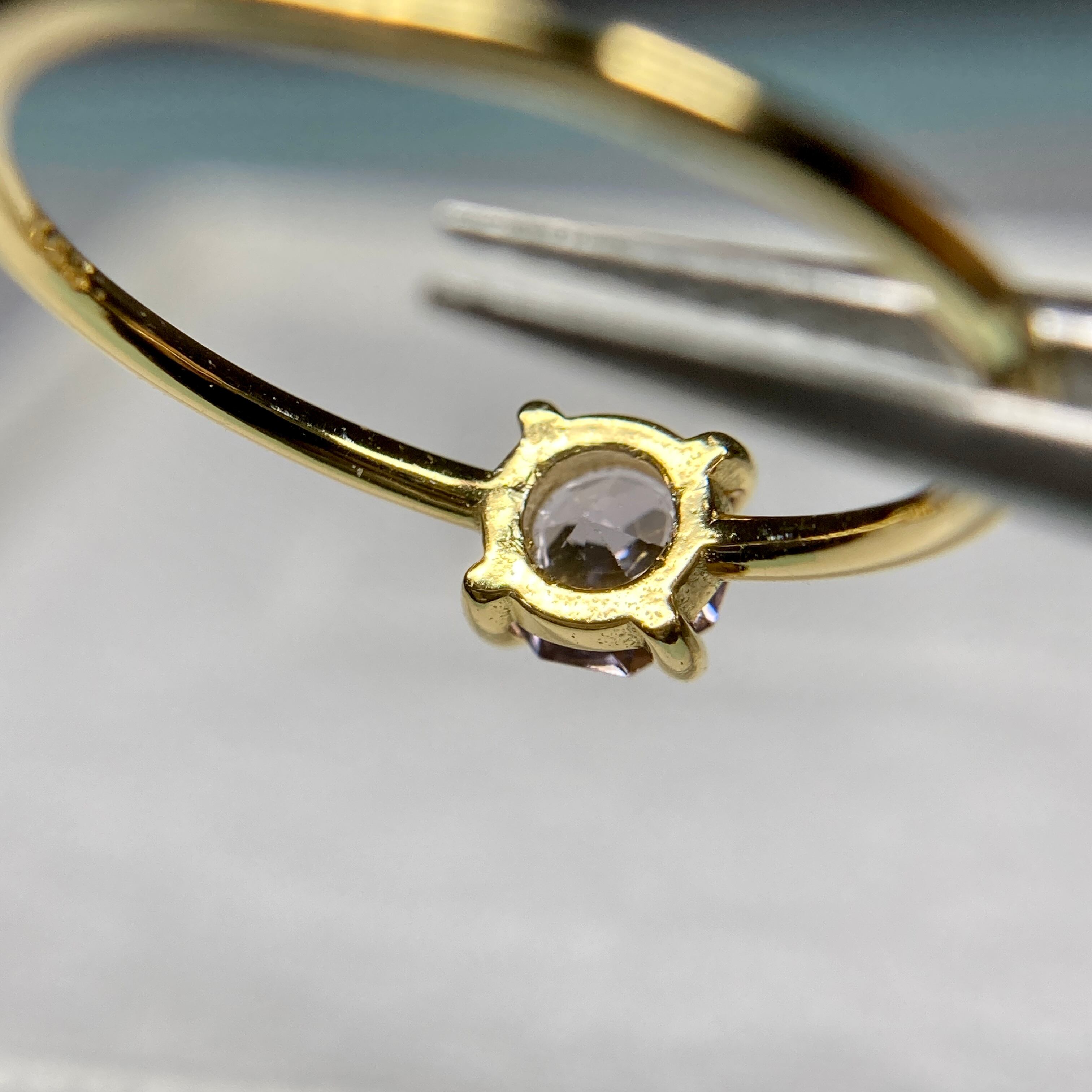 ・個人で空枠リングにルースを留めたものになります。(ロウ付けなどされておりません。)
